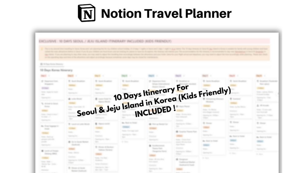 - EXCLUSIVE : 10 DAYS SEOUL / JEJU ISLAND ITINERARY INCLUDED (KIDS FRIENDLY)