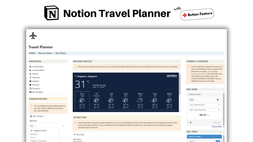 Let Notion Travel Planner be your reliable companion, ensuring you have a well-organized and memorable journey.